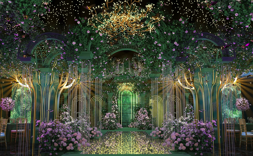 婚礼堂设计是一种专门用于举办婚礼和其他相关活动的室内设计。以下是一些关于婚礼堂设计的建议: